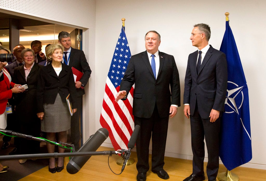 Pompeo arrived in Brussels about 12 hours after he was sworn in as secretary of state to replace Rex Tillerson, fired by Trump last month. His participation in the meeting so soon after taking office was noted by Stoltenberg and others who said it was a sign of U.S. commitment to NATO and its allies.