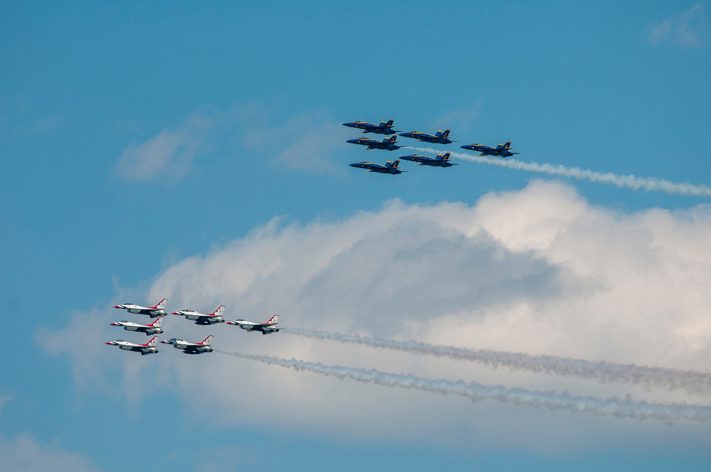 U.S. Air Force Air Demonstration Squadron, the Thunderbirds, and U.S. Navy Flight Demonstration Squadron, the Blue Angels, fly over New Castle, Del., during the America Strong multi-city flyover, April 28, 2020. (Capt. Brendan Mackie/Army National Guard)The Navy's Blue Angels and the Air Force's Thunderbirds conduct "a collaborative salute" to honor those battling the COVID-19 pandemic with a flyover New York and New Jersey on Tuesday, April 28, 2020. (Evan Agostini/Invision/AP)U.S. Navy Flight Demonstration Squadron, the Blue Angels, fly over Stamford Hospital in Stamford, Conn., during the America Strong Newark and New York City flyover, April 28, 2020. (Staff Sgt. Steven Tucker/Air National Guard)A health care professional watches the U.S. Navy Flight Demonstration Squadron, the Blue Angels, and U.S. Air Force Air Demonstration Squadron, the Thunderbirds, fly over Stamford Hospital in Stamford, Conn., during the America Strong Newark and New York City flyover, April 28, 2020. (Staff Sgt. Steven Tucker/Air National Guard)People watch as a formation of the Blue Angels and Thunderbirds flight teams pass in front of the New York City skyline as seen from in Weehawken, N.J., Tuesday, April 28, 2020. The flyover was in salute to first responders in the fight against the new coronavirus. (Seth Wenig/AP)The Navy's Blue Angels and the Air Force's Thunderbirds conduct "a collaborative salute" to honor those battling the COVID-19 pandemic with a flyover New York and New Jersey on Tuesday, April 28, 2020. (Evan Agostini/Invision/AP)People watch as a formation of the Blue Angels and Thunderbirds flight teams pass in front of the New York City skyline as seen from Weehawken, N.J., Tuesday, April 28, 2020. The flyover was in salute to first responders in the fight against the new coronavirus. (Seth Wenig/AP)People watch as a formation of the Blue Angels and Thunderbirds flight teams pass in front of the New York City skyline as seen from Weehawken, N.J., Tuesday, April 28, 2020. The flyover was in salute to first responders in the fight against the new coronavirus. (Seth Wenig/AP)A formation of the Blue Angels and Thunderbirds flight teams pass behind the Empire State Building in New York City as seen from Weehawken, N.J., Tuesday, April 28, 2020. The flyover was in salute to first responders in the fight against the coronavirus. (Seth Wenig/AP)The military's elite flight demonstration squadrons, the Navy's Blue Angels, top, and the Air Force's Thunderbirds, perform "a collaborative salute" to honor those battling the COVID-19 pandemic during the current coronavirus outbreak, Tuesday, April 28, 2020, in New York. (Kathy Willens/AP)People watch as a formation of the Blue Angels and Thunderbirds flight teams pass in front of the New York City skyline as seen from Weehawken, N.J., Tuesday, April 28, 2020. The flyover was in salute to first responders in the fight against the new coronavirus. (Seth Wenig/AP)Spectators photograph as the military's elite flight demonstration squadrons, the Navy's Blue Angels and the Air Force's Thunderbirds, perform "a collaborative salute" to those battling the COVID-19 pandemic, Tuesday, April 28, 2020, in New York. The salute was planned to honor frontline medics, doctors, first responders, and essential personnel who have cared for the sick and dying during the crisis. (Kathy Willens/AP)