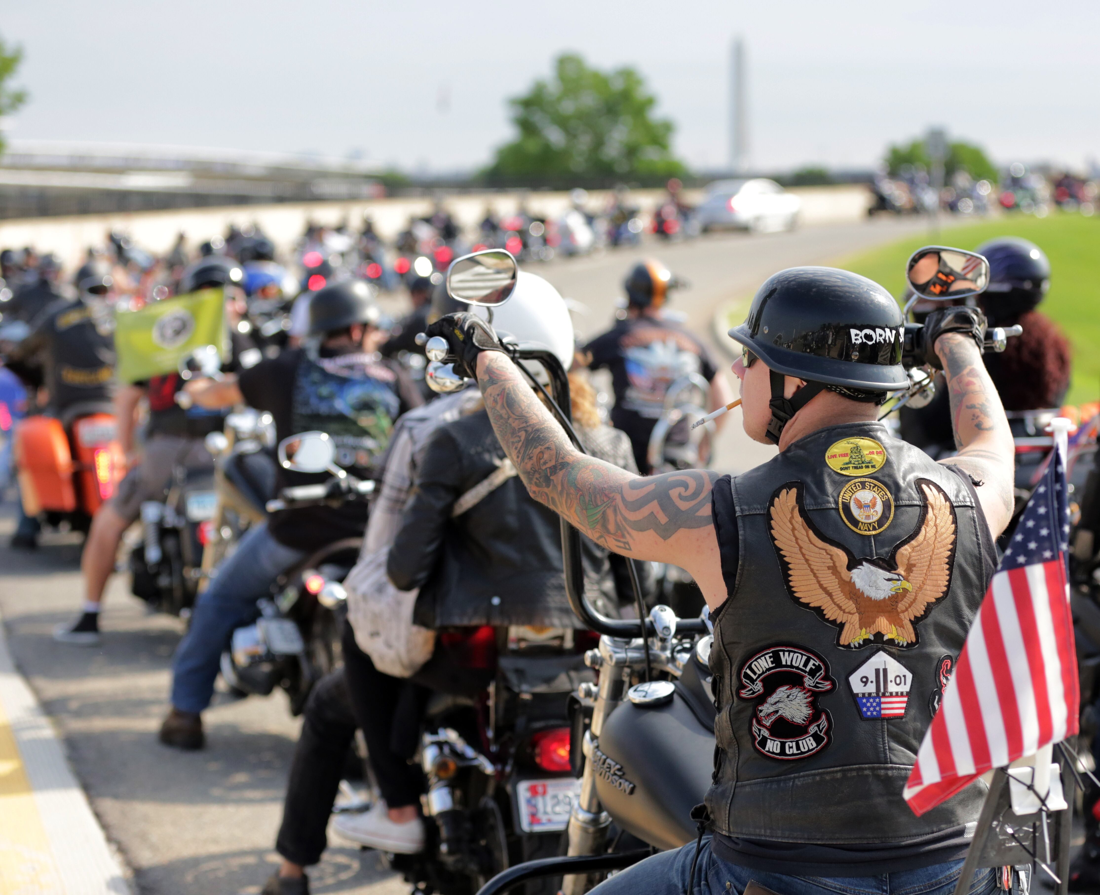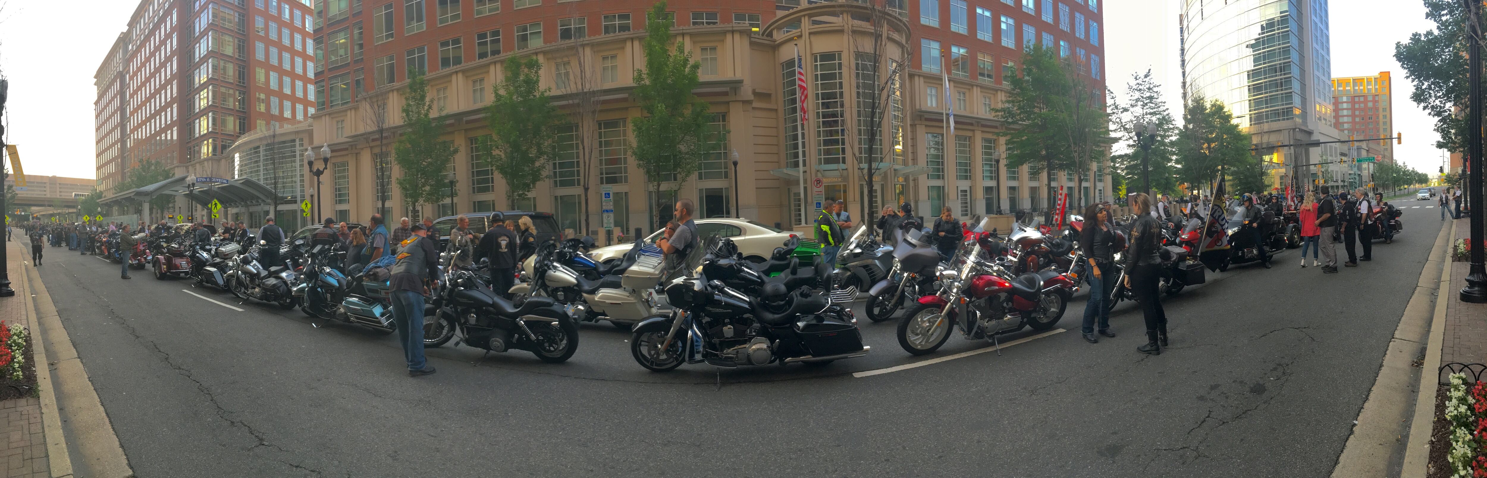With the alarm deactivated, I hopped on the bike and made my way toward a hotel, where a D.C. chapter of Rolling Thunder was staging their bikes. I would ride with them.
