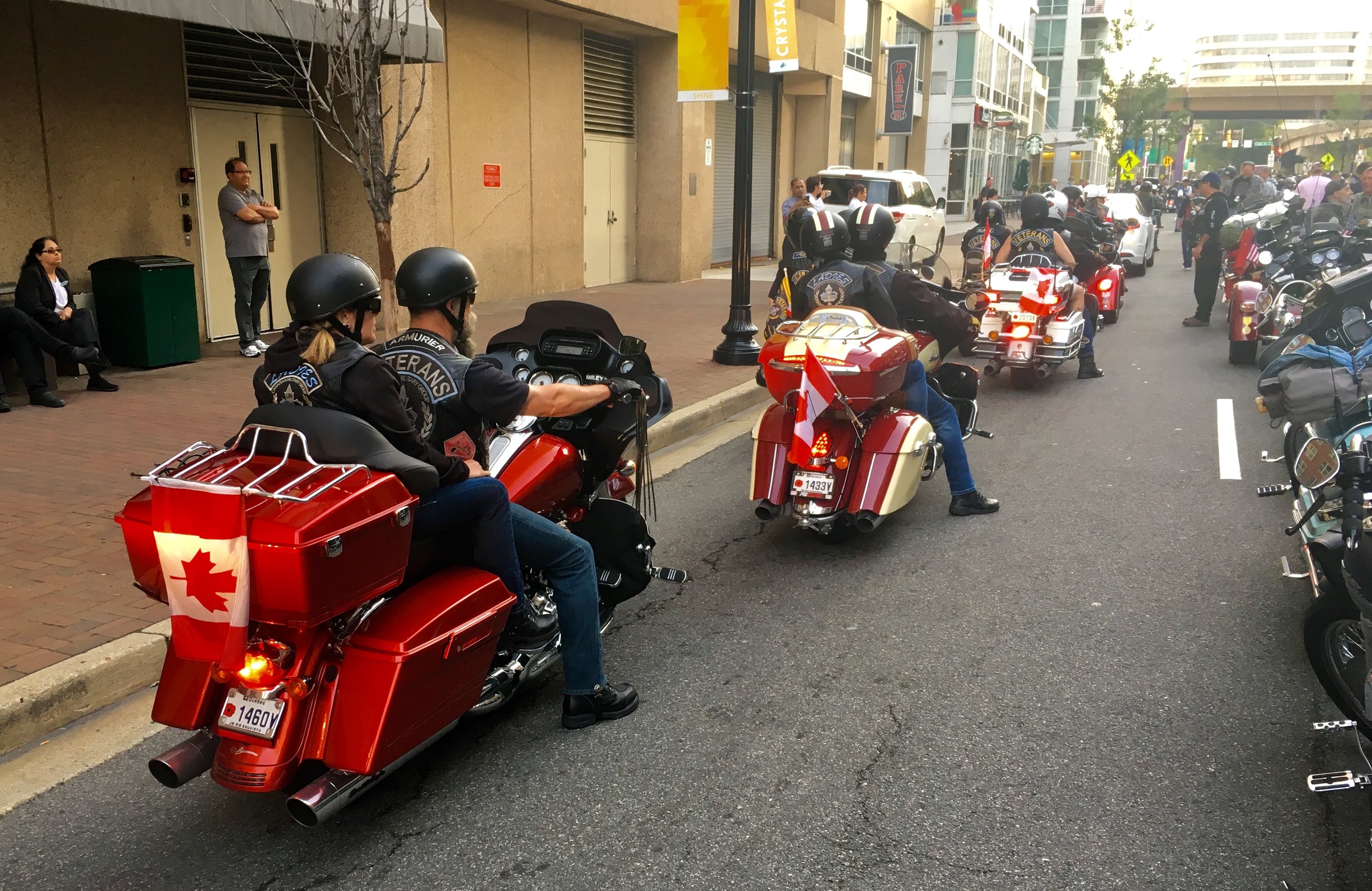 About 50 Canadian bikers rolled by, many proudly displaying a maple leaf and speaking French. The scale of the event was setting in.