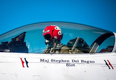 The Thunderbirds website said Del Bagno had more than 3,500 total flight hours in 30 different aircraft, including 1,400 hours as an Air Force pilot.