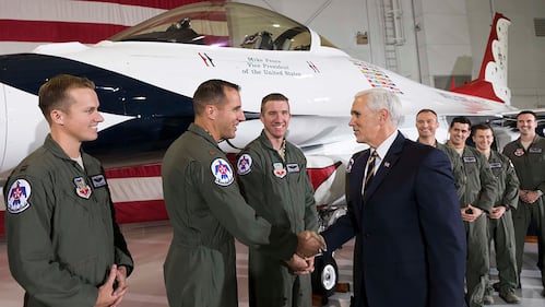 He was photographed shaking hands with Vice President Mike Pence when Pence visited the Thunderbirds hangar at Nellis Jan. 11.