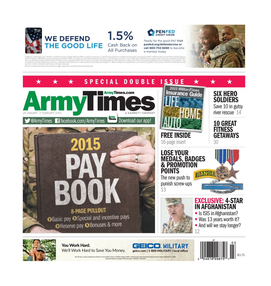 In this week's issue of Army Times, the 2015 pay book. Get your own copy starting Monday at your local exchange or commissary.