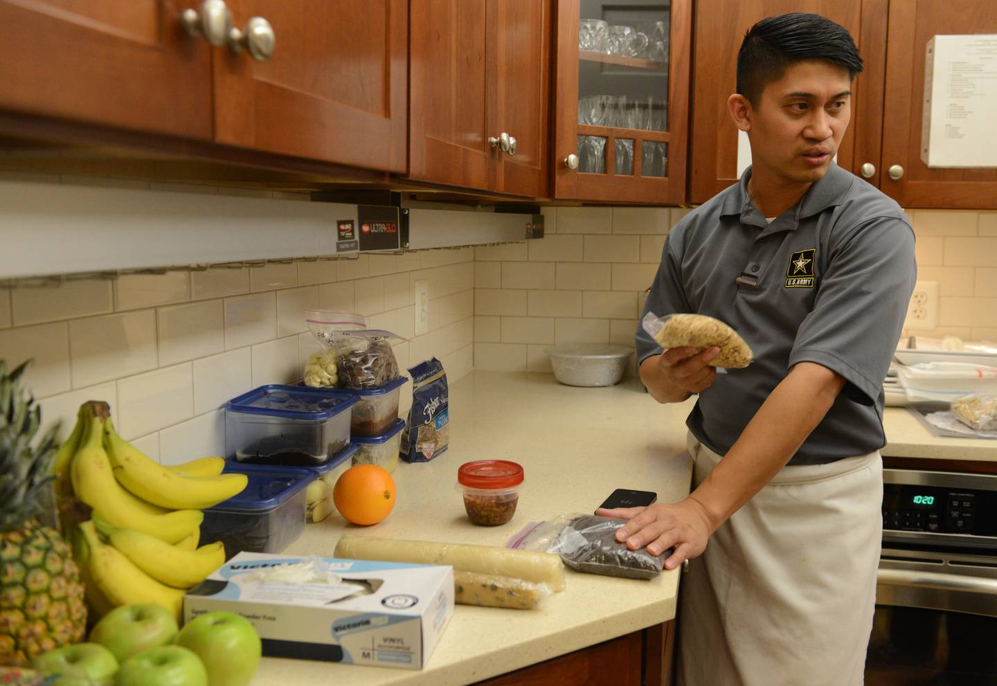 Staff Sgt. Marc Susa, an enlisted aide, prepares a meal.