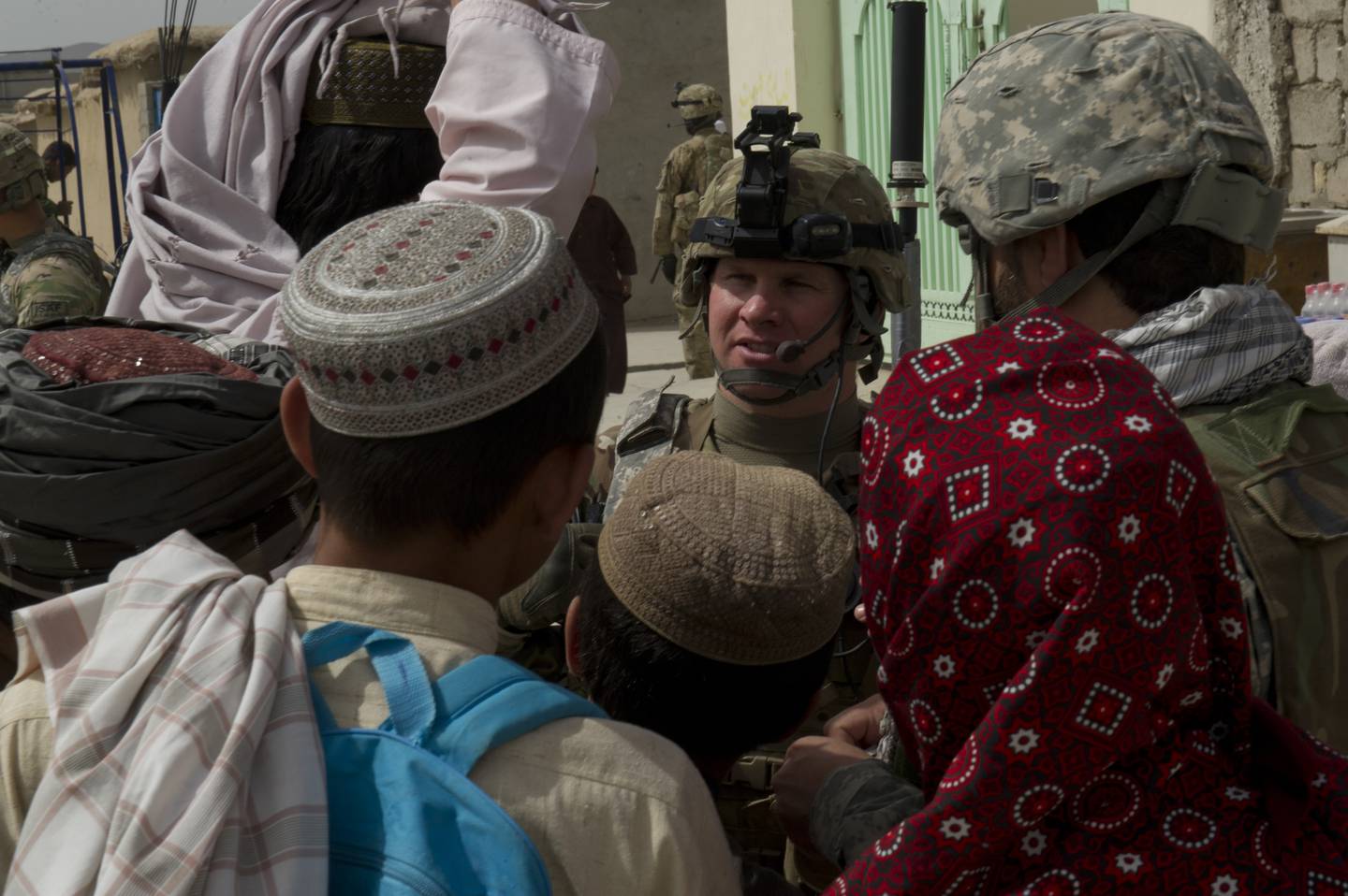 Women seeking to become civil affairs specialists in the Army must have one to four years of service, and no more than three years in grade as an E-4, to apply for the qualification course. Here, a civil affairs specialist talks with local citizens of Qalat city, Afghanistan, while on patrol in 2012.
