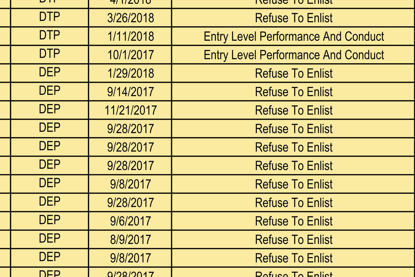 The list, which was unsealed this week after a request from the AP, offers "refuse to enlist" as the reason for expelling two-thirds of the recruits. That is the reason given for 35 percent of enlistee discharges Army-wide, according to a research study posted on a Defense Department website.