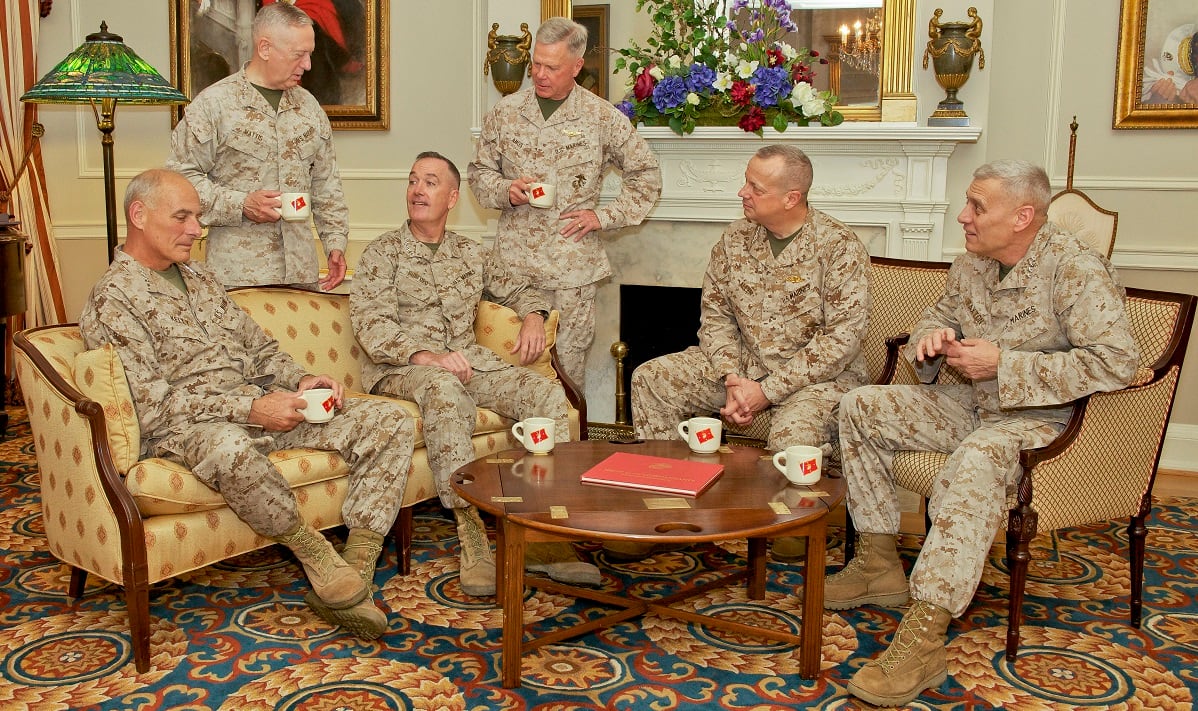 Right now a retired or uniformed Marine holds the seat of secretary of defense, White House chief of staff, chairman of the Joint Chiefs of Staff, head of Africa Command and incoming head of United States Central Command.