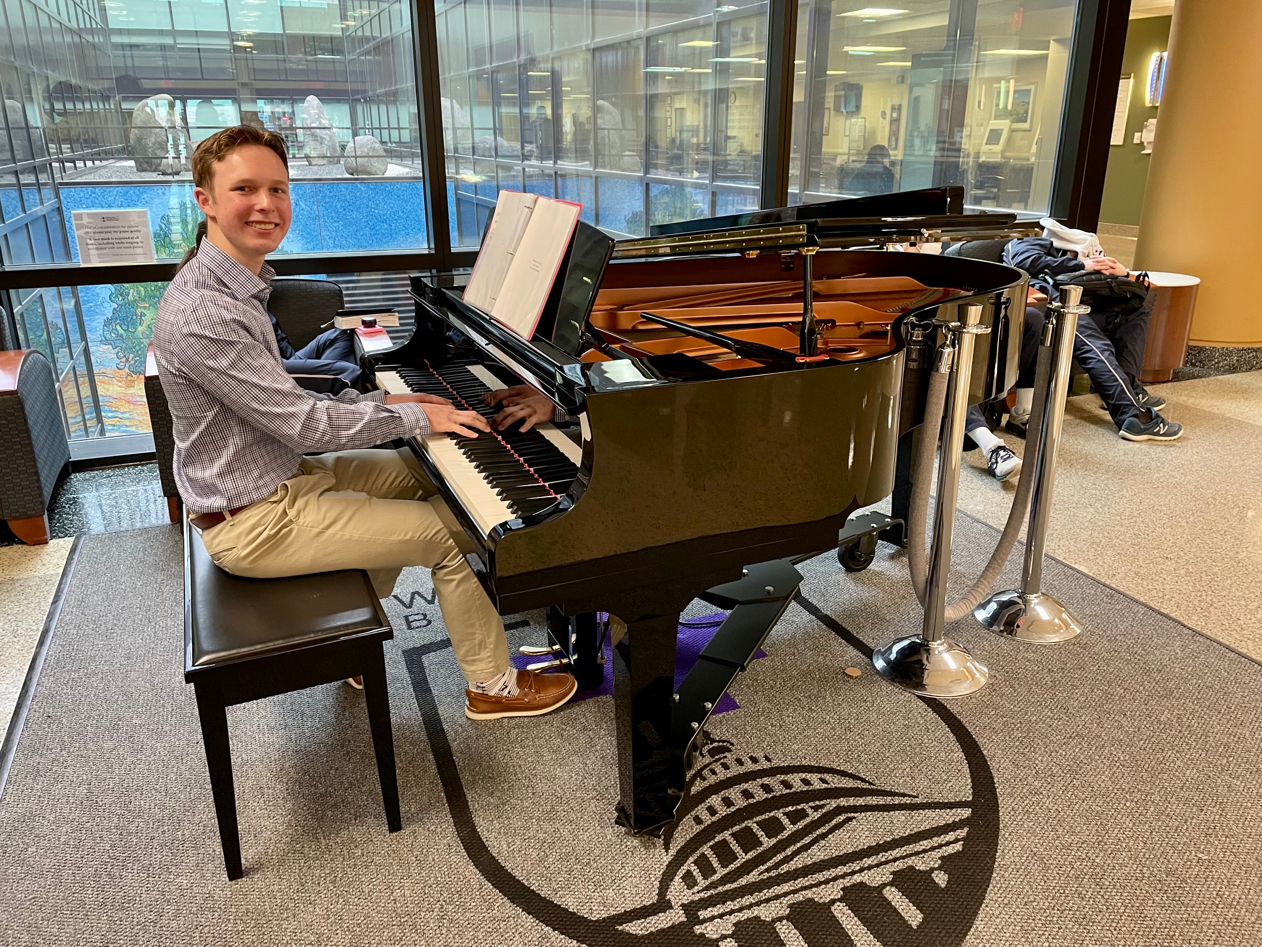 During his gap year, Mitchell has been working at a local Panera Bread and volunteers to play the piano for patients, visitors and workers at the Walter Reed National Medical Center. He also plays the guitar in his youth worship band at church and says he loves “to fill the room with sound. I love how it goes together with all the other instruments so well.”