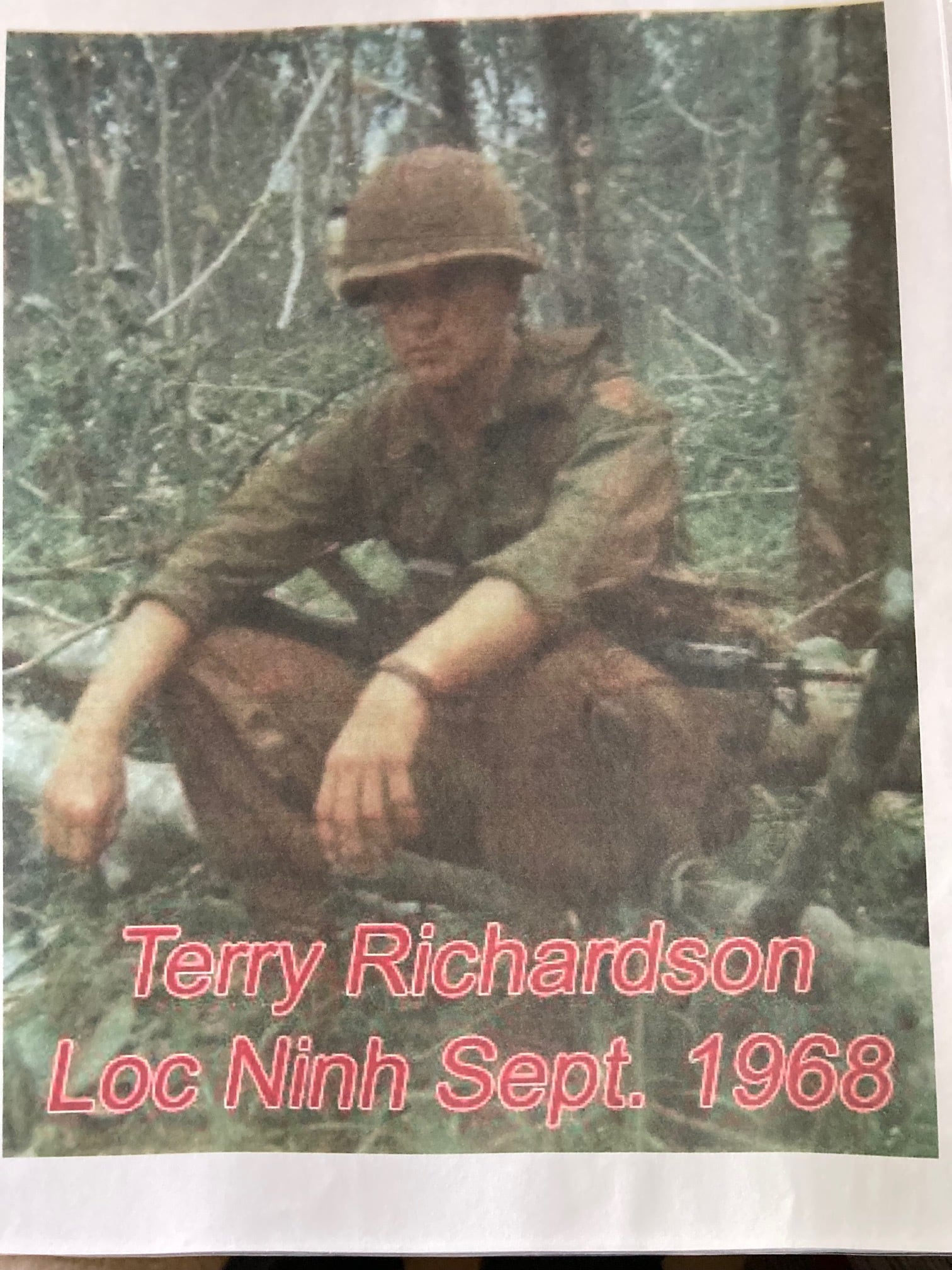 This photo shows Richardson after he was found by several soldiers after hours of calling in tactical airstrikes on his position during the Vietnam War. (Courtesy Dave Himmer)