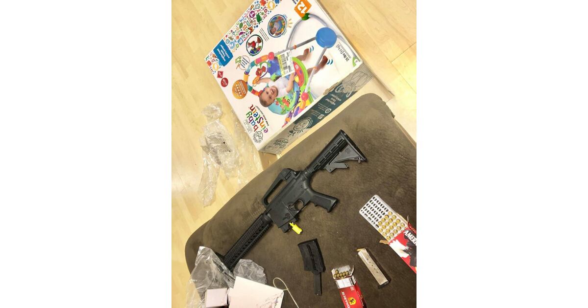 But upon opening the box at the shower, they found it contained a loaded Mossberg 715T semi-automatic rifle inside.