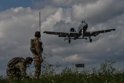 U.S. Air Force combat controllers with the 321st Special Tactics Squadron observe an A-10 Thunderbolt II landing on Jägala-Käravete Highway, Aug. 10, 2017, in Jägala, Estonia. (Senior Airman Ryan Conroy/Air Force)
