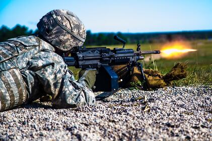 A Michigan National Guard Soldier with Headquarters and Headquarters Company (HHC), 107th Engineer Battalion fires the M249 Squad Automatic Weapon (SAW) on Aug. 7, 2017, during a live fire exercise. (Spc. Alan Prince/National Guard)