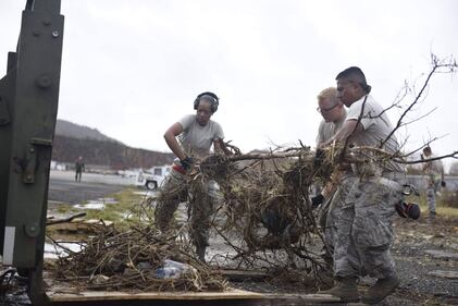 Airmen from the Minnesota Air National Guard's 133rd Airlift Wing, provide logistical support for the airport on St. Thomas, Virgin Islands, Sept. 21, 2017, after a destructive one-two punch of Hurricanes Irma and Maria ravaged the island. (Tech. Sgt. Paul Santikko/Air Force)