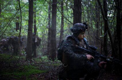 A Marine with Marine Rotational Force-Europe holds a defensive position during Exercise Aurora 17 in Lärbro, Sweden, Sept. 20, 2017. Aurora 17 is the largest Swedish national exercise in more than 20 years, and it includes supporting forces from the U.S. and other nations in order to exercise Sweden’s defense capability and promote common regional security. (Staff Sgt. Marcin Platek/Marine Corps )