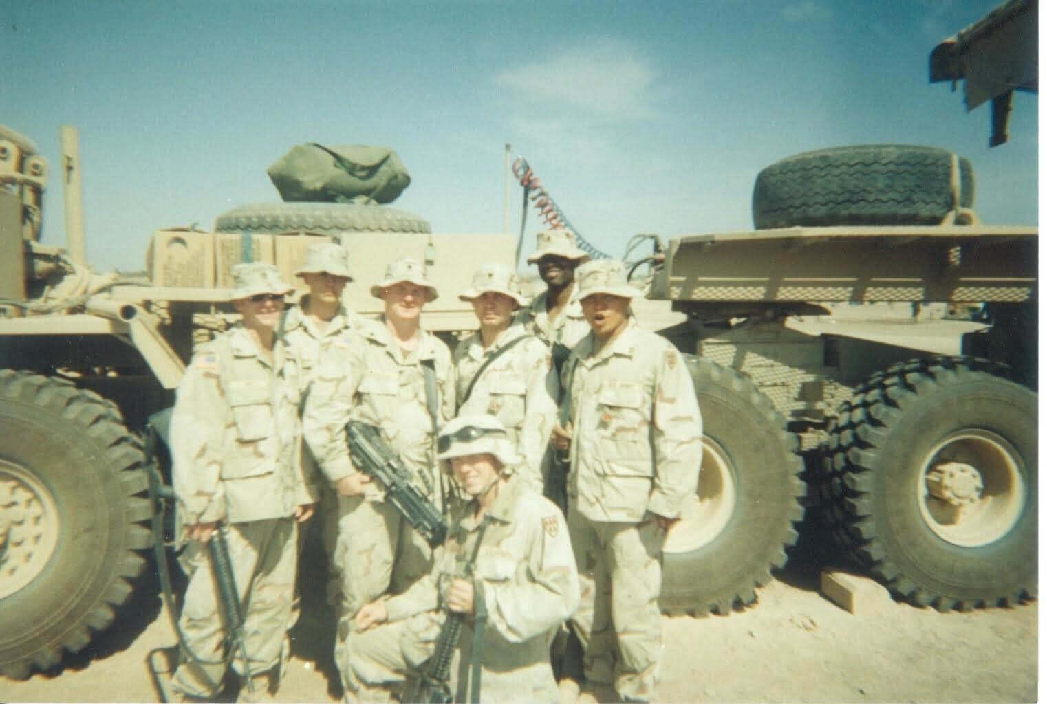 In February 2003, Combs, kneeling in the photo, and his unit were deployed to Kuwait and then Iraq for the start of the war. (Photo courtesy of Todd Combs)