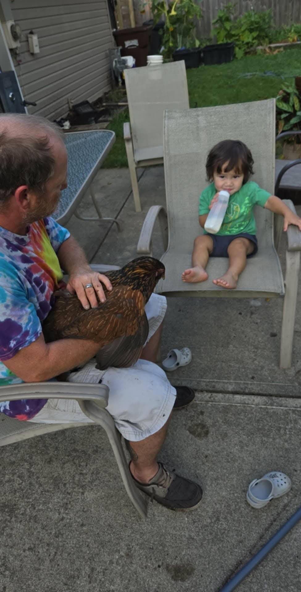 For Combs, his chickens also helped him connect to his children. He would watch with delight as his toddler, Arkyn, would knock on the garage door, where the birds were let in for a time, and greet the chickens.